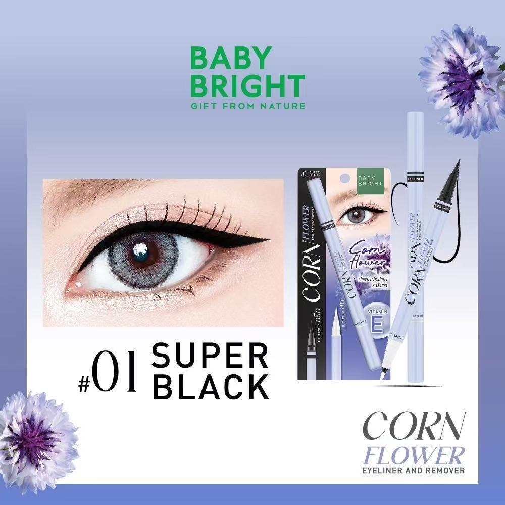 Baby Bright Cornflower Eyeliner & Remover. On one end, you'll find an easy-to-use, highly pigmented, precise, water-resistant, and sweat-resistant eyeliner. On the other end, a remover tip erases excess lines, and smudges, or creates lines to your liking. Enriched with the benefits of Cornflower Extract, including antioxidants that revitalize the eyes, and Vitamin E, which nourishes the delicate eye area and reduces premature aging. This results in a defined look easily achieved with just one stick. Additionally, the remover side doubles as a handy tool for cleansing eyeliner instead of using cotton or wet wipes. No paraben and alcohol.