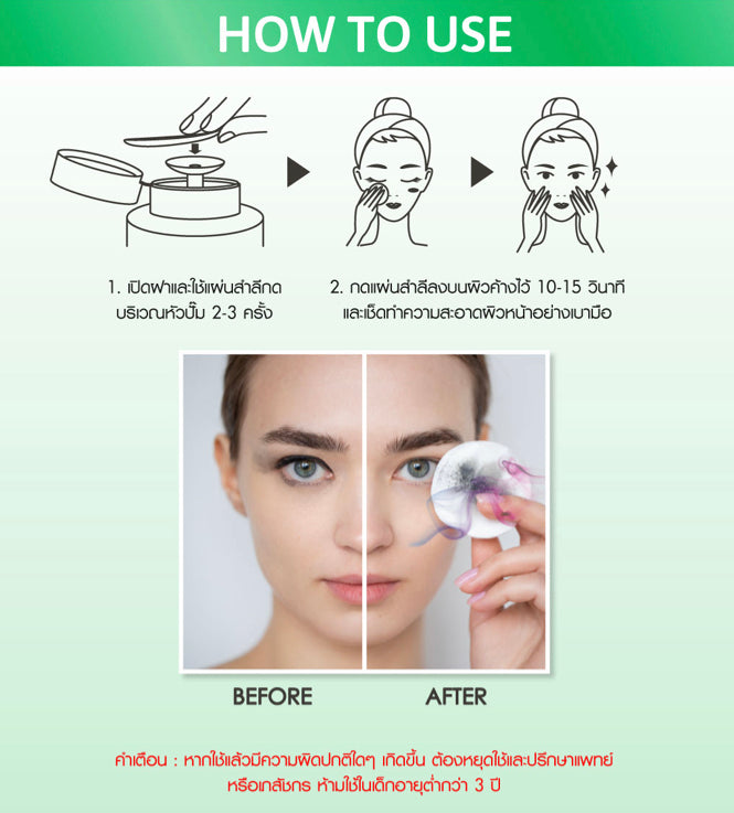 2. กดแผ่นสำลีลงบนผิวประมาณ 10-15 วินาที แล้วค่อยๆ เช็ดทำความสะอาดใบหน้า