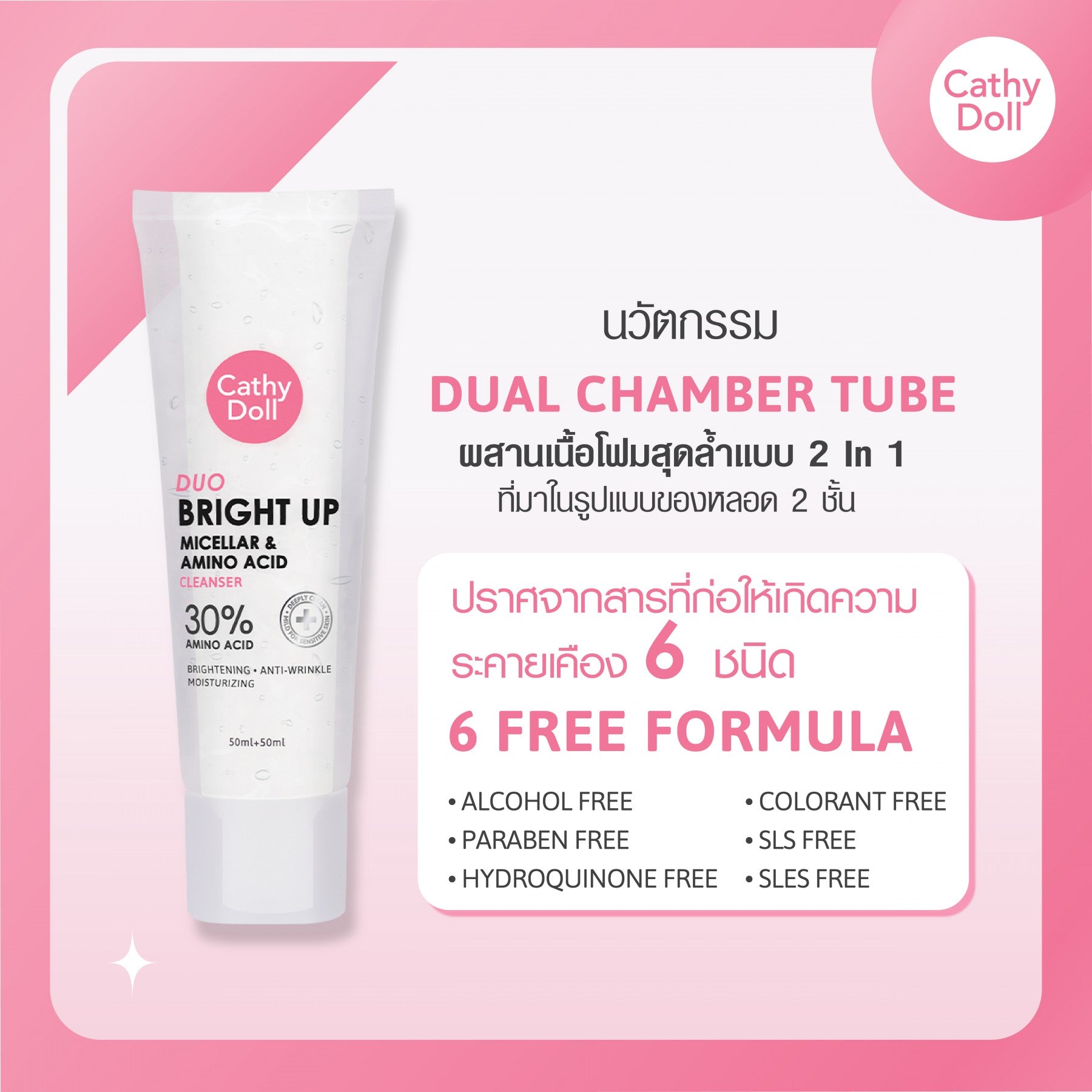 Cathy Doll Duo Bright Up Micellar & Amino Acid Cleanser 50มล.+50มลSamsao Thai Cosmetic