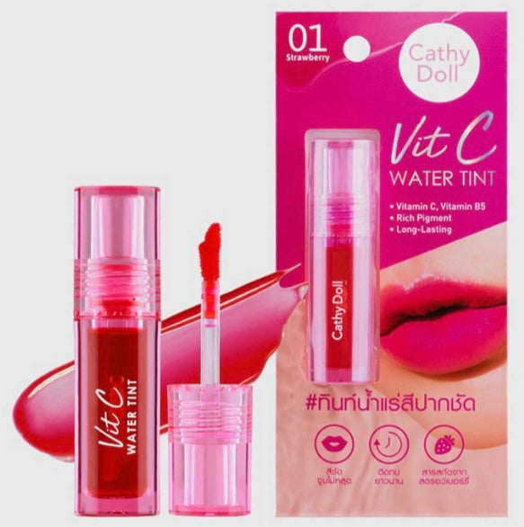 Cathy Doll Vit C Water Tint ลิปทินท์ผสมน้ำแร่ที่เกลี่ยง่าย บางเบาและไม่เหนียวเหนอะหนะ! ให้เม็ดสีเข้มข้นและติดทนพร้อมสารบำรุงพิเศษจากวิตามินซีเข้มข้น วิตามินบี 5 และสารสกัดจากผลไม้นานาชนิด พร้อมกลิ่นหอมสดชื่น ให้ผลลัพธ์แลดูสุขภาพดีอย่างเป็นธรรมชาติ