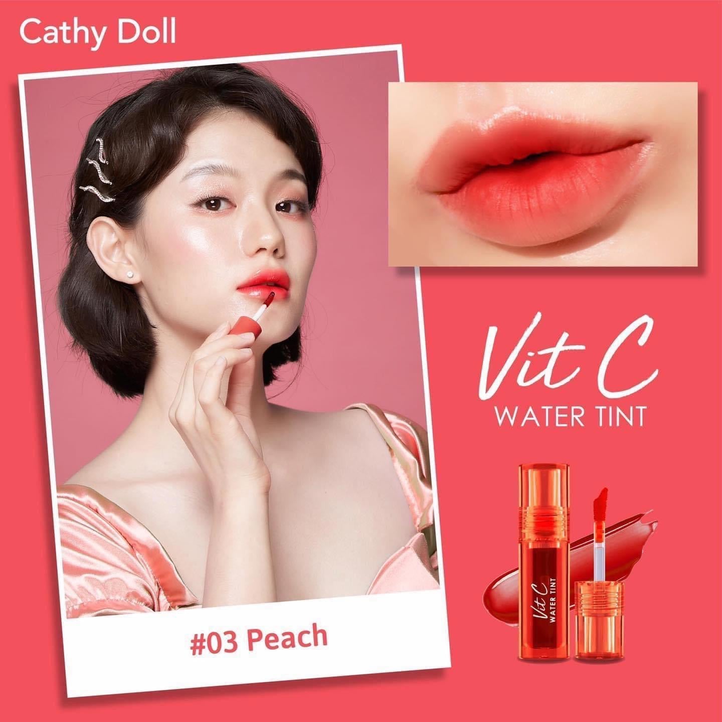 Cathy Doll Vit C Water Tint ลิปทินท์ผสมน้ำแร่ที่เกลี่ยง่าย บางเบาและไม่เหนียวเหนอะหนะ! ให้เม็ดสีเข้มข้นและติดทนพร้อมสารบำรุงพิเศษจากวิตามินซีเข้มข้น วิตามินบี 5 และสารสกัดจากผลไม้นานาชนิด พร้อมกลิ่นหอมสดชื่น ให้ผลลัพธ์แลดูสุขภาพดีอย่างเป็นธรรมชาติ