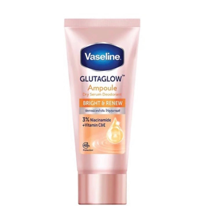 Vaseline GlutaGlow Ampoule Dry Serum Deodorant. This revolutionary dry serum is clinically proven to penetrate 20 layers deep into your skin, restoring and brightening your underarms from within.