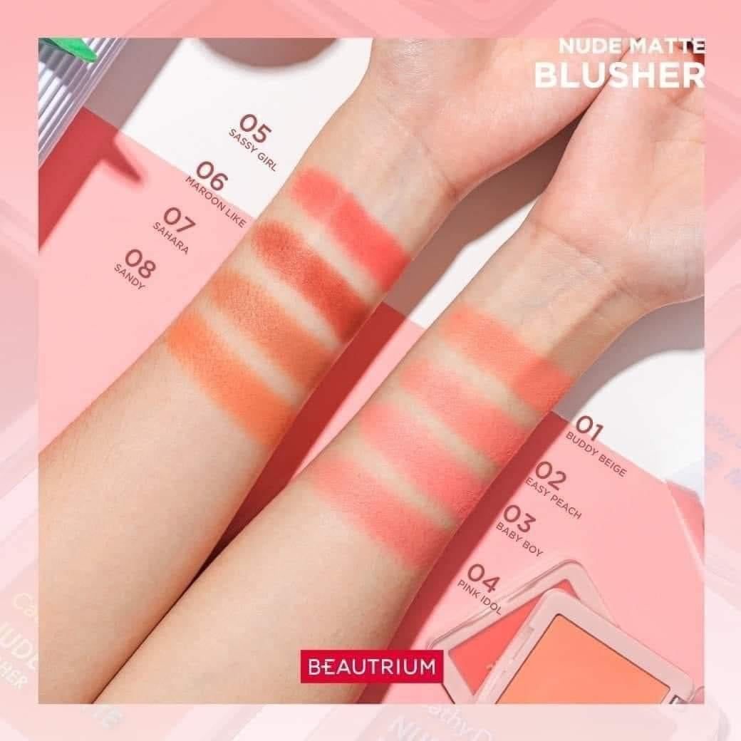 Nude Matte Blusher features fine and smooth color that naturally enhances the look of your cheeks for flushed and healthy appearance like Korean girls with its pigment-rich shade, making it suitable for all skin tones and lifestyles.