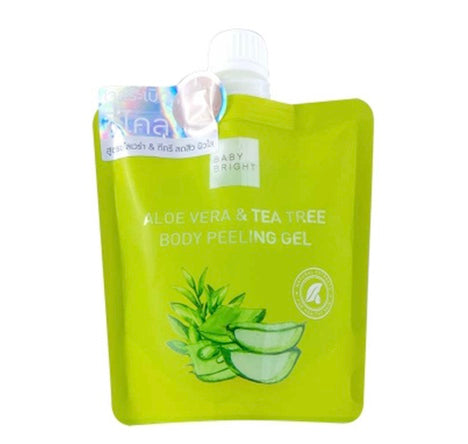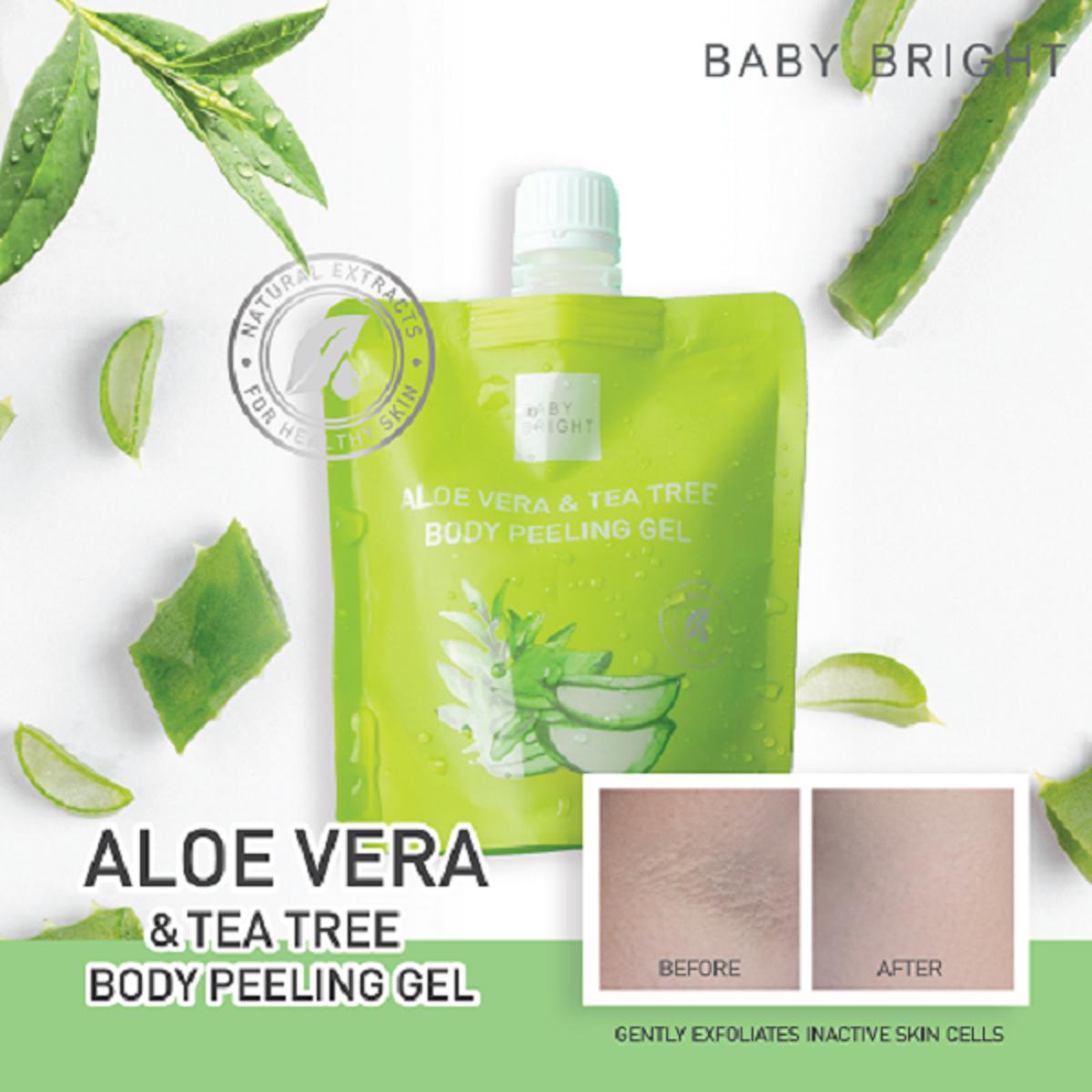 Baby Bright Aloe Vera & Tea Tree Body Peeling Gel, a gel texture that gently exfoliates dead skin cells. without causing skin irritation With concentrated gel texture .Rich in natural extracts from tea tree. That helps clean the skin and helps to stop bacteria. Causes of acne Ready to soothe the skin with aloe vera extract. Helps moisturize the skin, not dry and tight, revealing clear, healthy-looking skin.