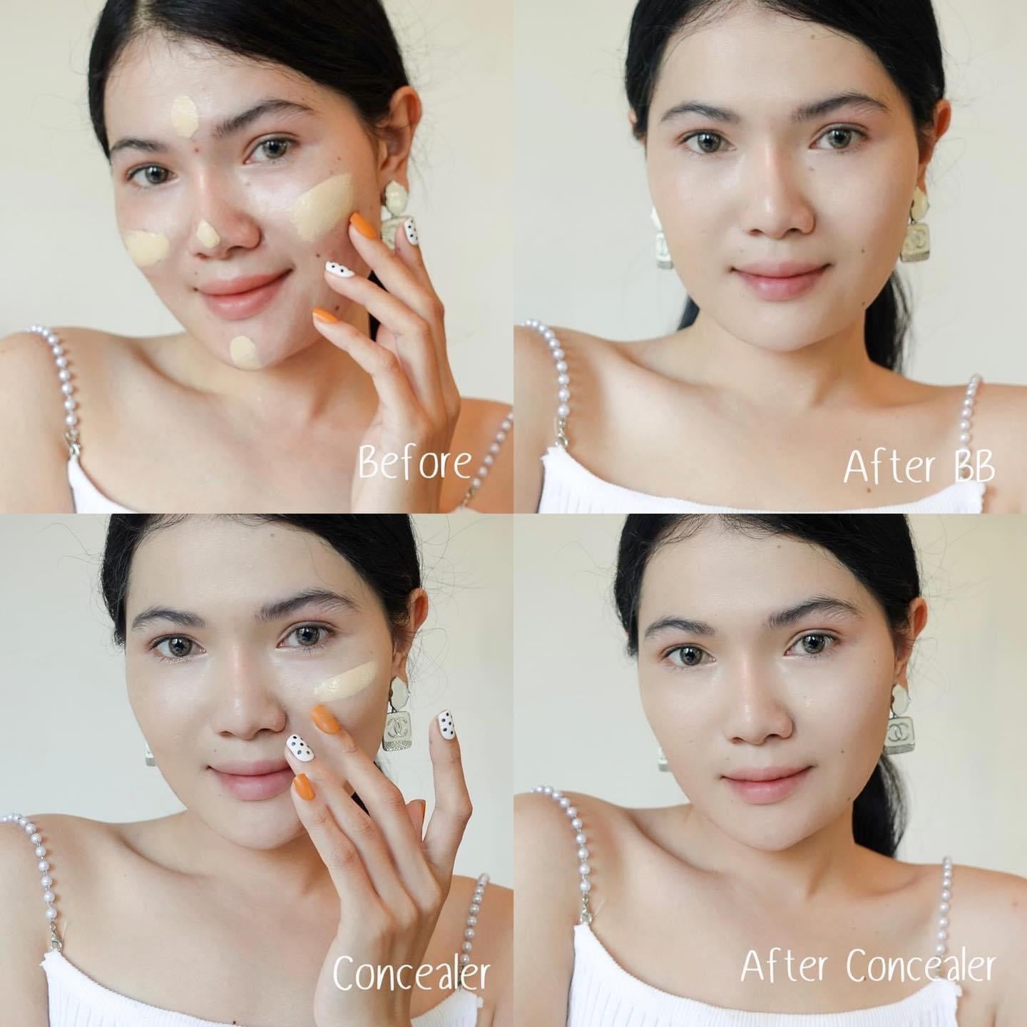 How to use : Twist open the cap and squeeze the matte BB cream in an appropriate amount onto fingertip. Dot it on 5 areas on the face which are forehead, nose, cheeks and chin. Then, blend the cream evenly all over your face. Tear at the edge of concealer side and apply concealer on areas with acne scars, redness, dark spots, freckles or blemishes for better coverage.