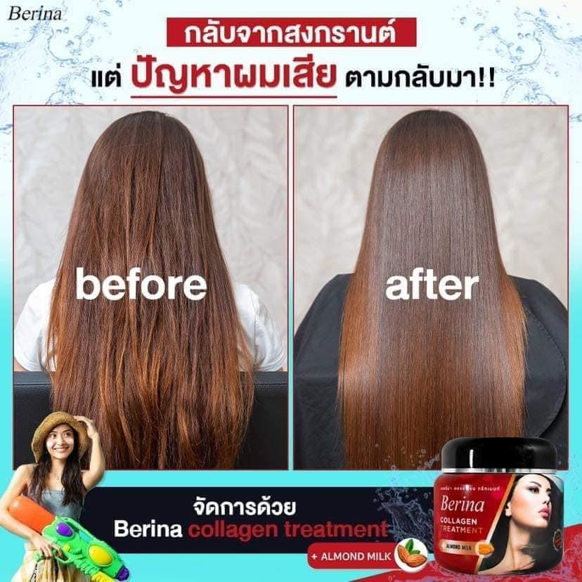 A special treatment formula from Berina with ingredients from collagen and almond milk that will help adjust the hair condition. From damaged hair, frizzy or broken hair ‼✨ from being damaged by chemicals, whether dyed, permed or straightened, you can turn back time to bring it back to life. Soft and smooth hair