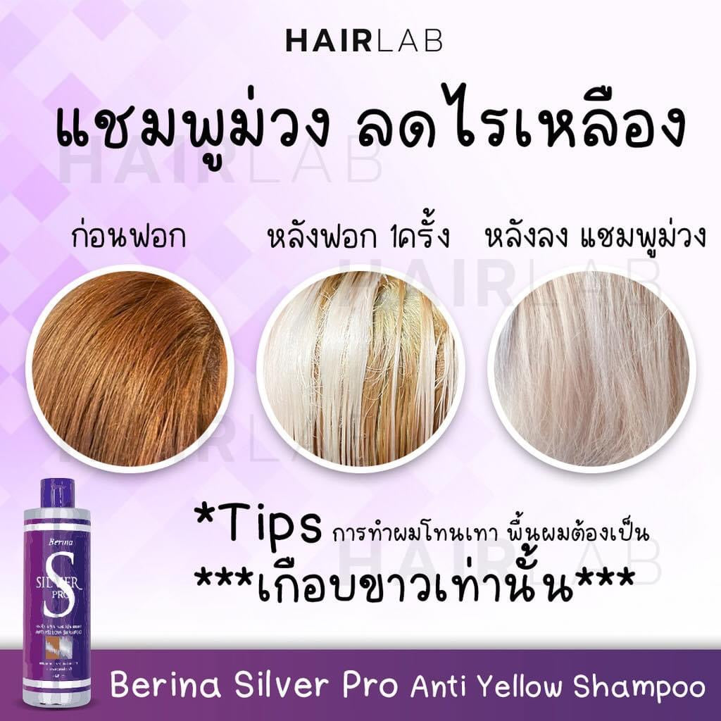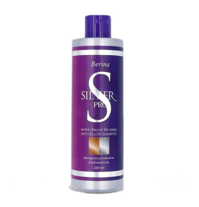 Anti Yellow Shampoo reduces yellow shine. For bleached hair,. Berina Silver Pro Shampoo will cause bleached hair (yellow) to turn dull to gray. Reduce yellow shine and increase silver gray shine in one go. Combined with Hydrolyzed Keratin to help protect and restore hair. to be healthy