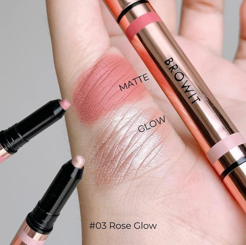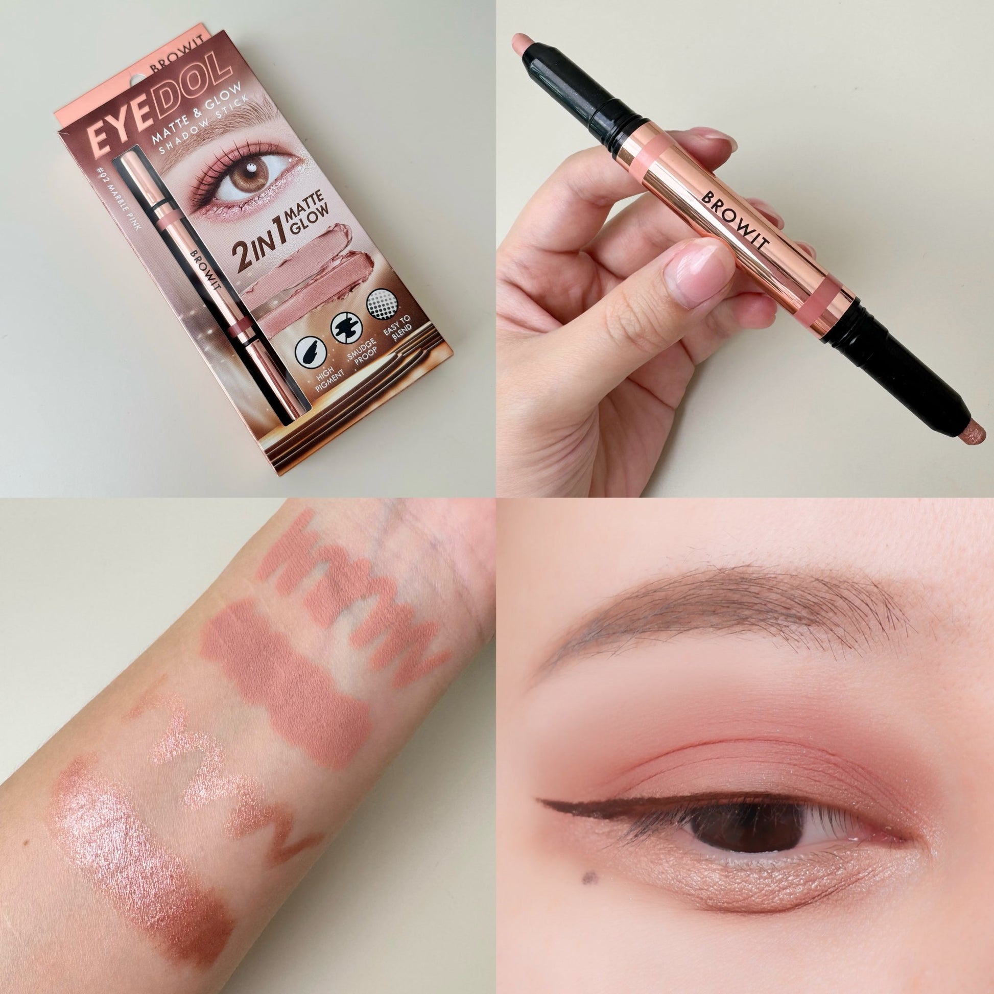 Browit Eyedol Matte & Glow Shadow Stick.The durability is guaranteed. Whether spraying water or rubbing, it still works. The texture is soft, easy to spread, the color doesn't fall into the groove.