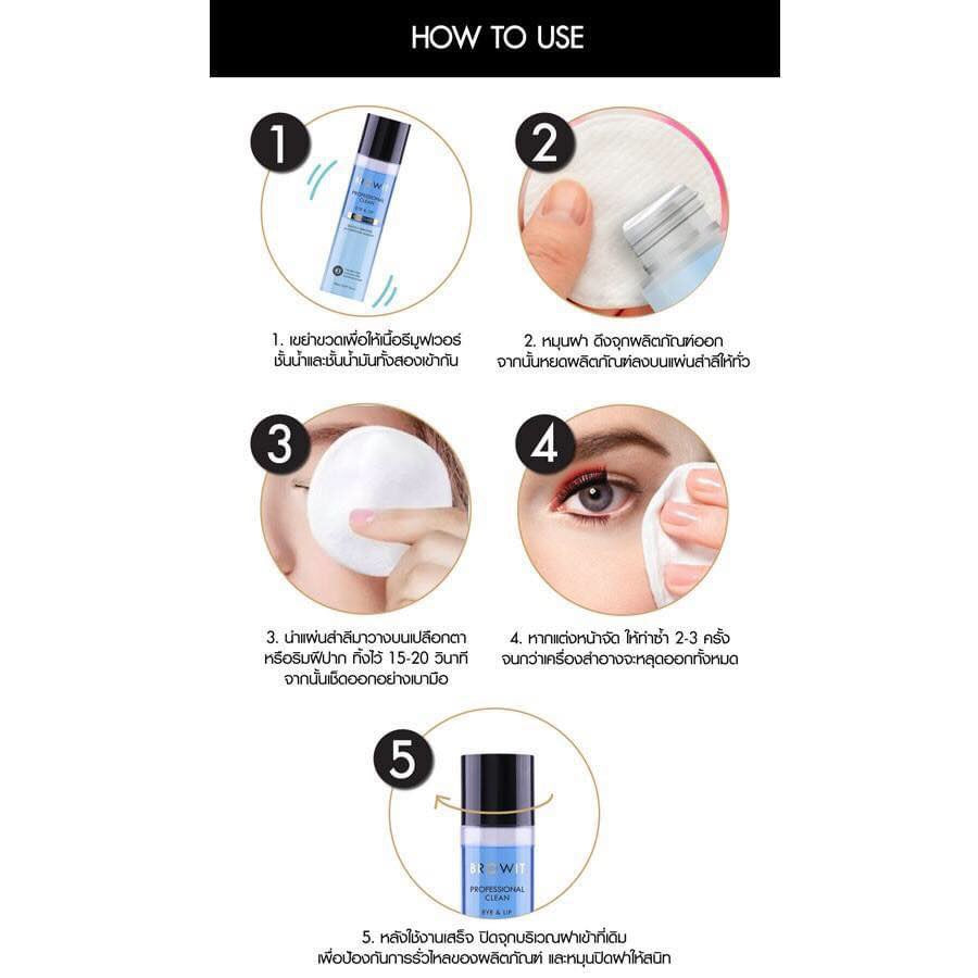A product for cleaning makeup around the eyes and lips that are difficult to remove waterproof makeup. Features micellar technology that deeply nourishes and does not cause skin irritation Maintain moisture Does not make the skin dry and tight and has a pH of 5-6 that is close to the skin. Therefore suitable for sensitive skin. Combined with extracts from jojoba oil, turmeric and centella asiatica, which contain antioxidants. Makes the skin smooth, soft, and moisturized, revealing fresh, clean, clear skin.