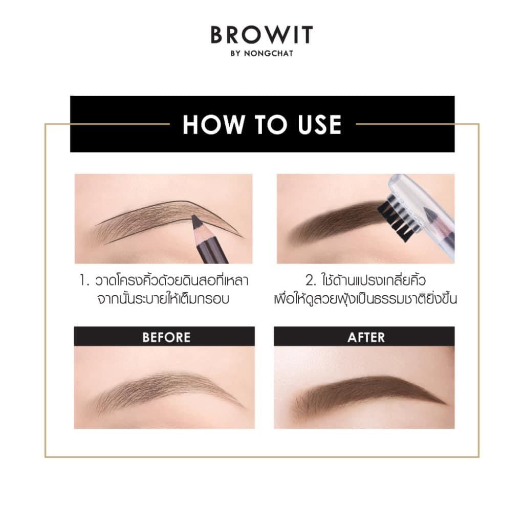 Browit Sharpen Brow Pencil fills in the eyebrows to make them beautiful and natural. It's also waterproof, sweat-proof, and long-lasting all day long. Comes with a good quality sharpener. Convenient to use. Long lasting all day.