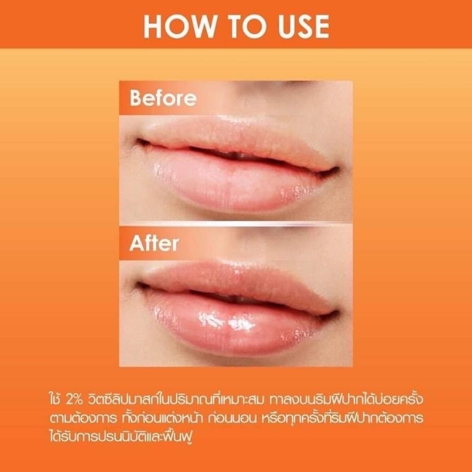 How to use: Use an appropriate amount of Vitamin C Lip Mask. Apply to lips as often as desired. Before putting on makeup, before going to bed, or whenever desired.