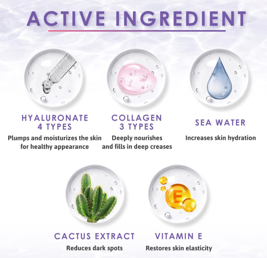 Experience skin rejuvenation with Hyaluronic Acids-infused sleeping mask shot. This powerful formula delivers up to four levels of moisture to plump and nourish your skin while you sleep, leaving it looking healthy and well-nourished. Enriched with 3 types of Collagens, it deeply nourishes and fills in deep creases, resulting in silky-smooth, youthful-looking skin. The addition of Deep Sea Water, which is rich in minerals, helps to increase skin elasticity and reduce hydration loss, while Cactus Extract retains moisture for even more hydration. Tocopheryl Acetate, a potent antioxidant, restores skin elasticity for a firmer appearance. Moreover, it is also free from 5 harsh chemicals which are Alcohol, Paraben, Mineral Oil, Hydroquinone, and AHAs.