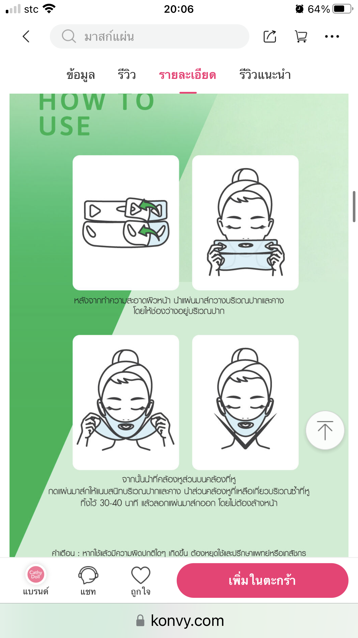 Cathy Doll Acne Oil Control V Line Hydrogel Mask Sheet 18gSamsao Thai Cosmetic