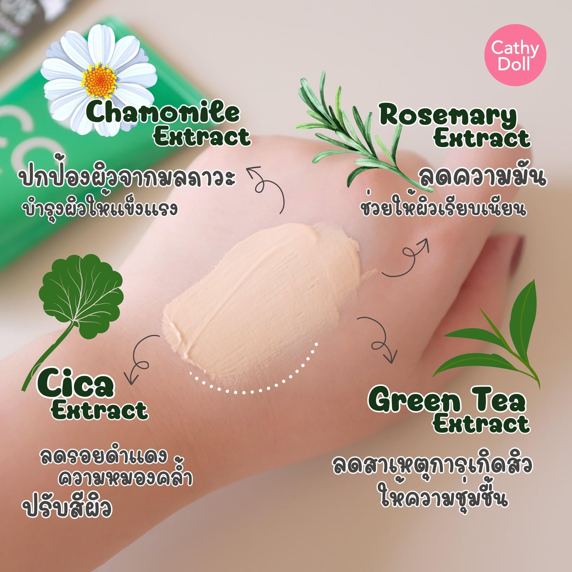 CC cream for brightening skin creamy texture, easy to spread not sticky. Ready to nourish the skin, oil control formula, get rid of acne, revitalize and protect the skin. With extracts from 3 types of ceramides, it helps protect the skin. Retains moisture to the skin. Extracts from CICA or Centella asiatica help reduce dark spots and redness for an even skin tone. Green tea extract reduces the causes of acne. Rosemary extract and Zinc PCA help reduce oil on the face that causes acne. BHA or Salicylic Acid helps exfoliate skin cells. Along with cleaning pores, PHA adjusts the skin condition to be smooth and even. Chamomile flower extract Helps protect the skin from various pollutants. Keep your skin healthy Ready to protect the skin from the sun with SPF50 PA+++. Can be used with all skin tones.