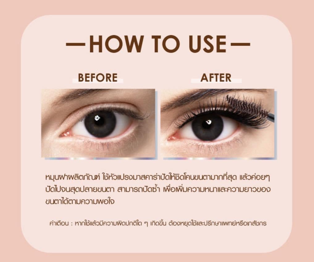 How to use: Twist to open the product cap and use the mascara brush to apply as close to the base of the lashes as possible, then gently sweep it all the way to the tips. Repeat steps to achieve desired thickness and length.