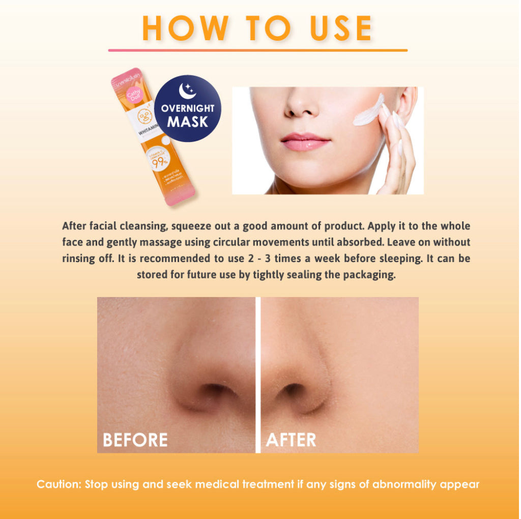 How to use : After facial cleansing, squeeze out a good amount of product. Apply it to the whole face and gently massage on face. Leave on without rinsing off. It is recommended to use 2 - 3 times a week before sleeping.