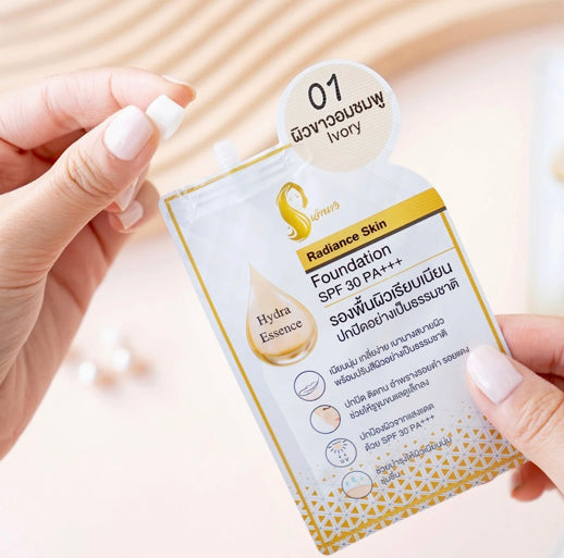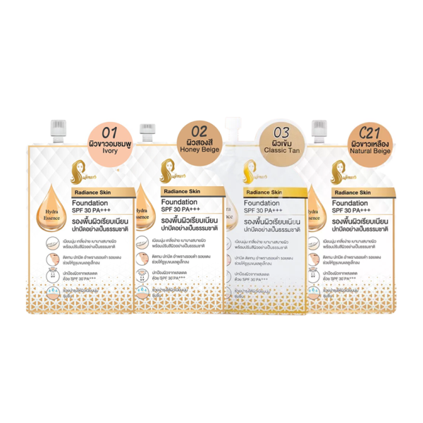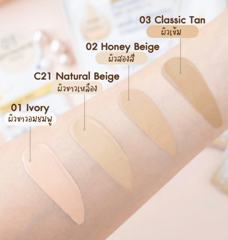 Foundation that nourishes and increases radiance with Brightening booster and Hydra essence. Adjusts skin tone to be naturally radiant. Controls oil with Silky Soft Dry Powder technology. Protects your skin from the sun with SPF30 PA+++. Skin-friendly foundation. But excellent concealment.