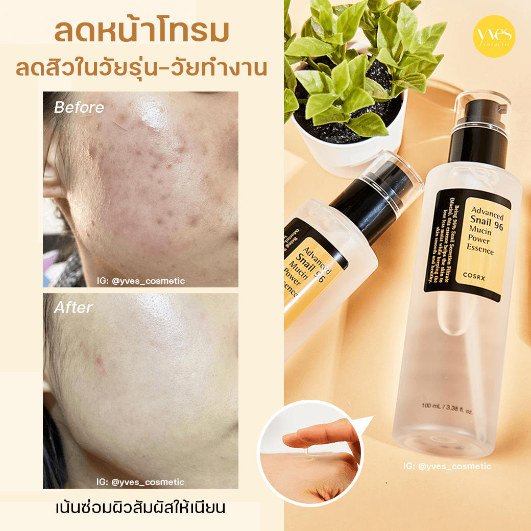 Concentrated essence, not sticky, 96% pure snail slime extract, gentle on the skin, helps retain moisture on the face, helps repair the skin, makes the skin elastic, looks full of water all day long, adjusts the skin to look smooth, lively, healthy naturally, does not cause irritation, suitable for all skin types