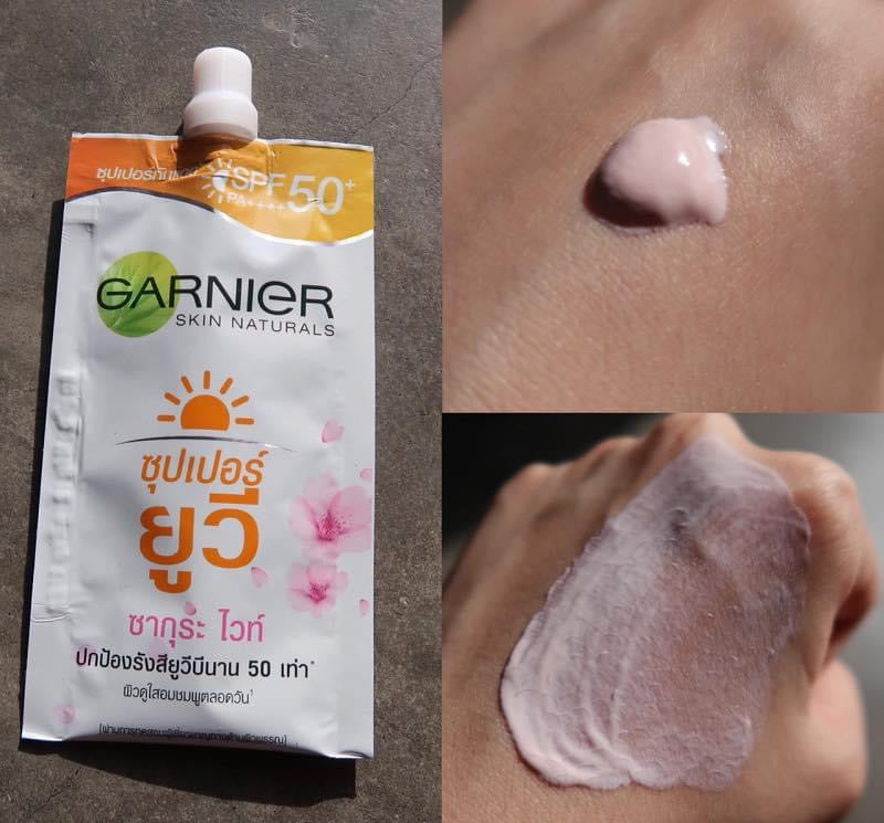 Excellent sun protection with Garnier Sakura Super UV Sunscreen, excellent quality from the Garnier brand with SPF 50+ and PA++++, protecting the skin from UVA UVB and UVA1 rays with Vitamin B3. Moisturize the skin Combines the value of sakura extracts Helps the skin look bright and pink. Suitable for all skin types.