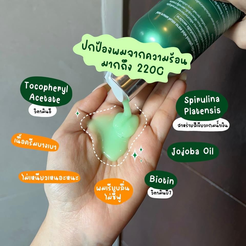 Non-sticky hair cream with blue-green spirulina algae extract and vitamin E. Add protein to hair, increase moisture, reduce frizz. Biotin Plus extract and jojoba oil help make long hair strong, healthy and shiny. Protect hair from heat up to 220 degrees Celsius. - Moisturizes hair, makes it soft and smooth, reduces frizz with blue-green spirulina algae and vitamin E. - Helps make long hair strong, healthy and shiny with biotin Plus extract and jojoba oil. Apply to hair after shampooing without rinsing or before styling with electrical equipment.
