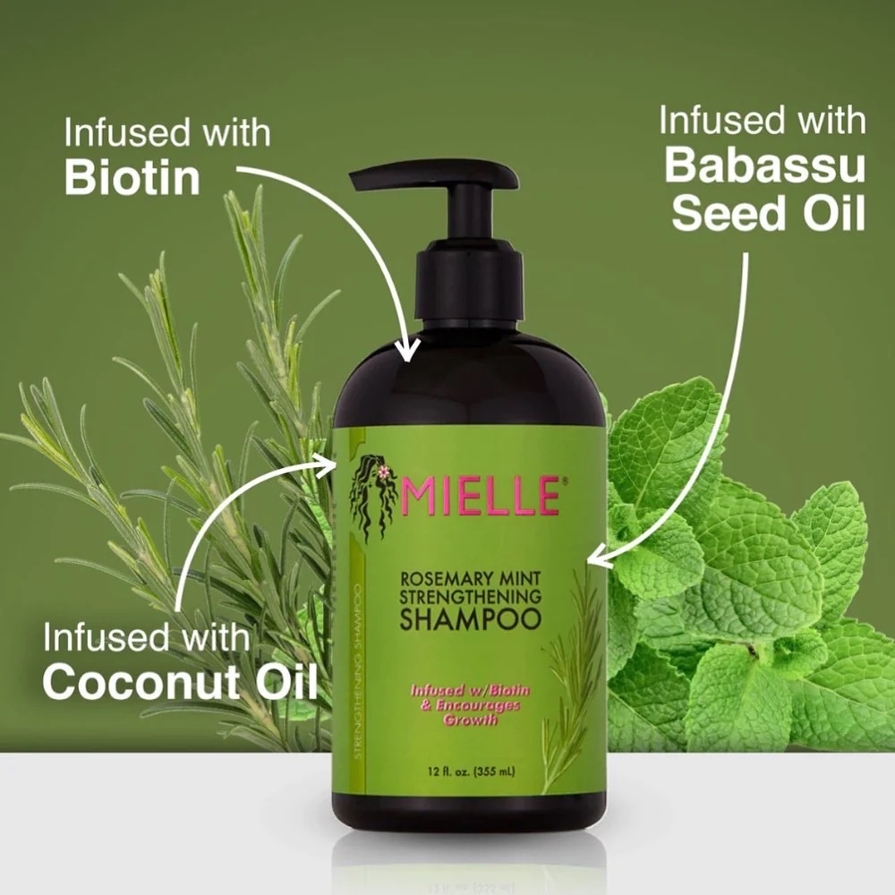 Instantly nourish and cleanse dry, weak, brittle hair with this scalp tingling strengthening shampoo. MIELLE® Rosemary Mint Strengthening Shampoo was developed to gently cleanse while providing key nutrients and intense moisture to the hair with unrivaled slip.