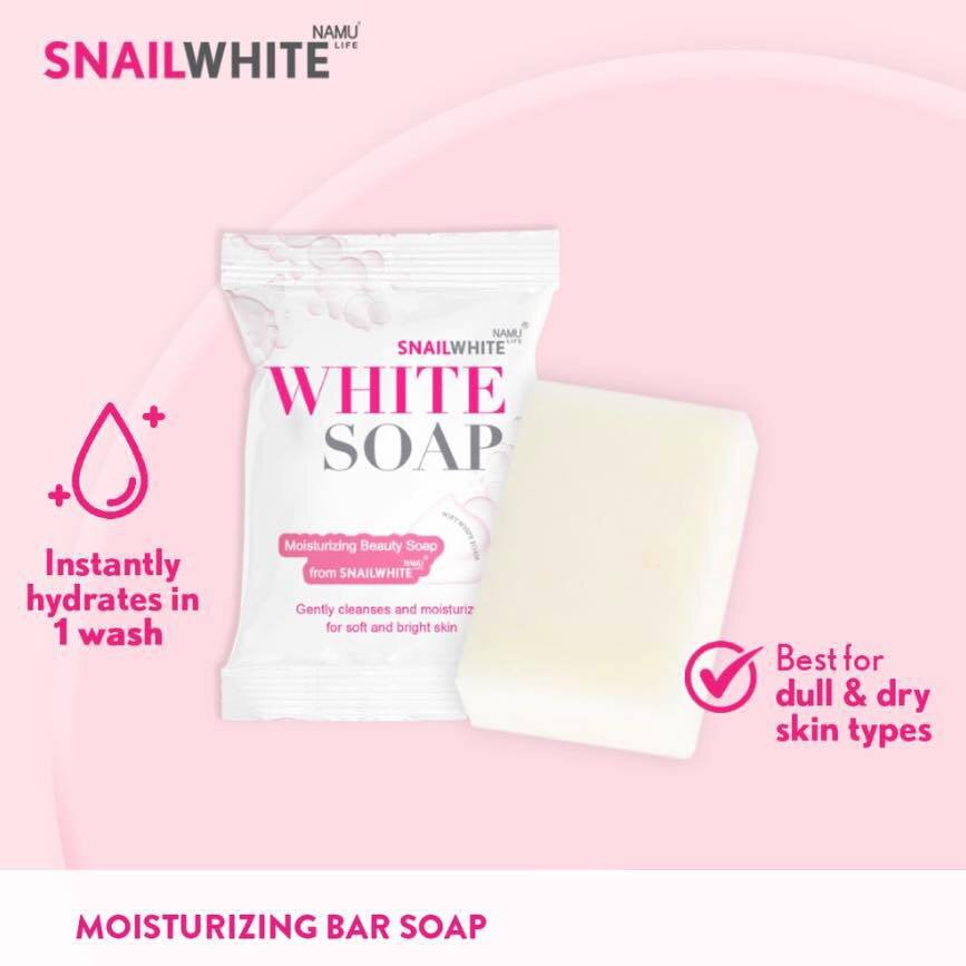 SnailWhite Whipp Soap, premium grade soap. To a new experience of skin care soap Whipped foam soap helps gently clean the skin with Revitalize with extracts from the leaves of the bearberry tree. That helps the body look radiant. and extracts from 3 types of plants, including Khok Kra-om flowers, Ecium oil and sunflower oil that reduces inflammation Combined with hyaluronic acid to help add water to the skin. Make your skin glowing. Youthful, healthy naturally