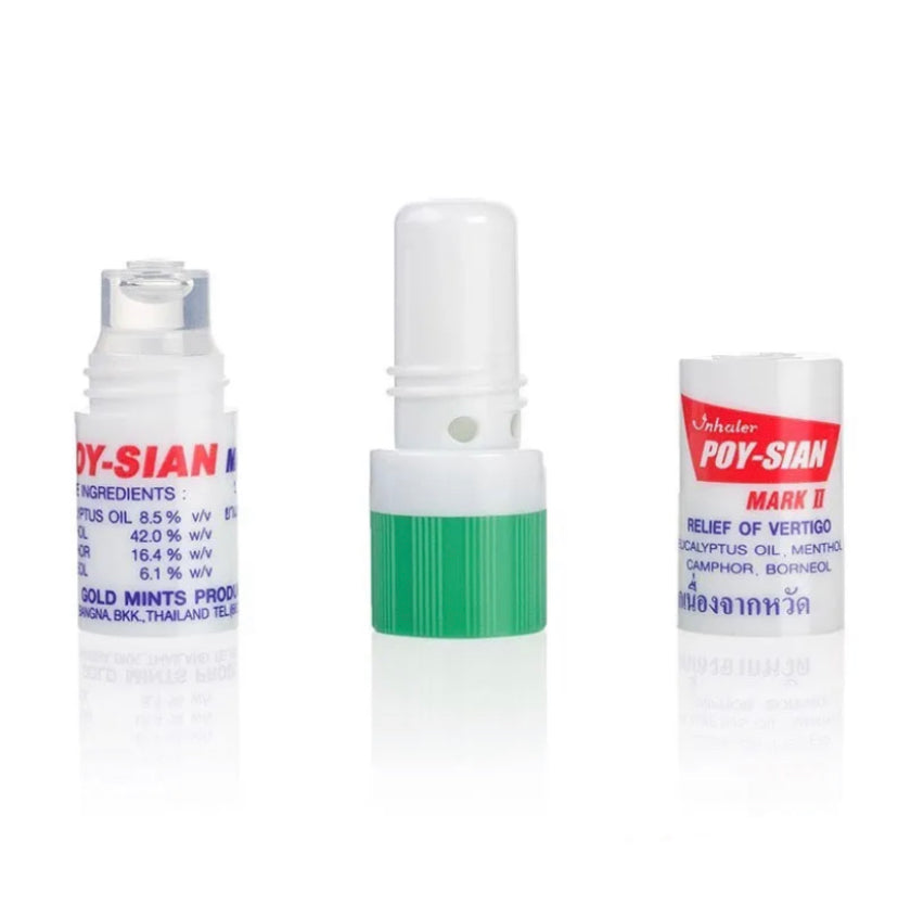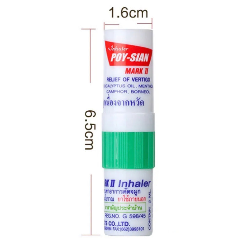 It is a popular inhaler and is produced in Thailand. It is an external medicine that consists of menthol, camphor, eucalyptus oil, borneol, and others. It can be used to relieve nasal congestion, dizziness, faintness, or nausea. When inhaled, it helps you feel relieved and refreshed. It is also convenient to carry and use anywhere, anytime.