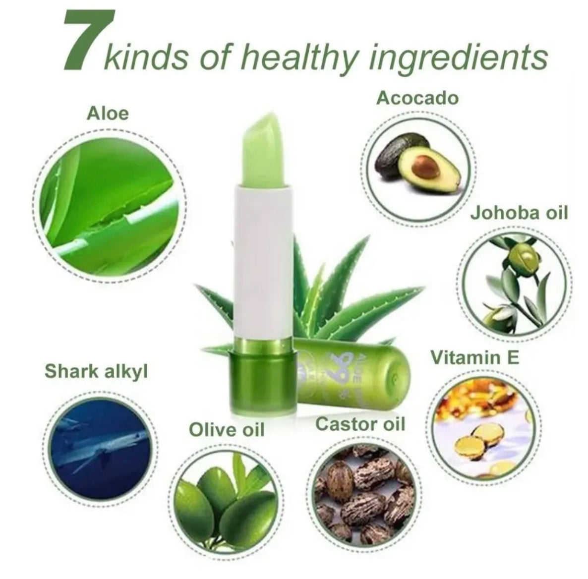 Tanako Magic Lip Balm Aloe Vera 99%, green aloe lip stick Once applied, it will turn pink as soon as you use it. and when applied regularly It will make dark spots on the lip disappear when applied daily.