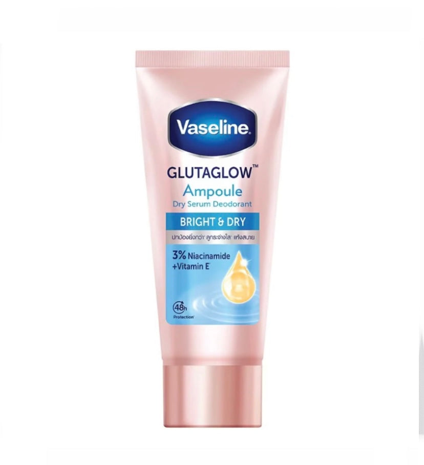 Vaseline GlutaGlow Ampoule Dry Serum Deodorant. This revolutionary dry serum is clinically proven to penetrate 20 layers deep into your skin, restoring and brightening your underarms from within.