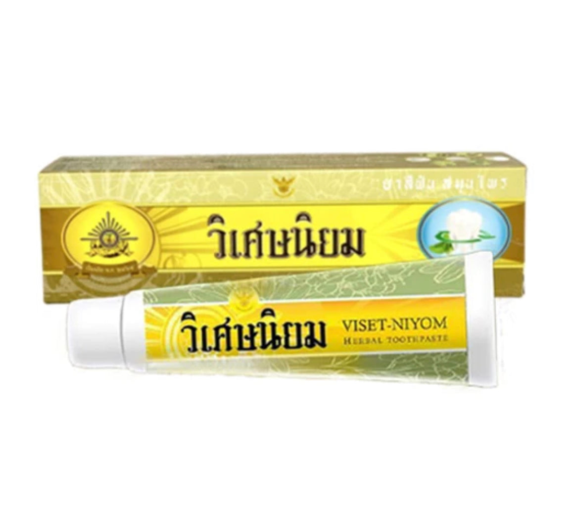 Viset-Niyom Herbal Thai - Toothpaste Herbs in 100 g tube. Original toothpaste with Thai herbs. Brush your teeth healthy and strong with the traditional Viset-Niyom herbal toothpaste from Thailand. Use the herbal toothpaste sparingly, it is enough for many applications. The Viset-Niyom toothpaste does not contain fluoride.