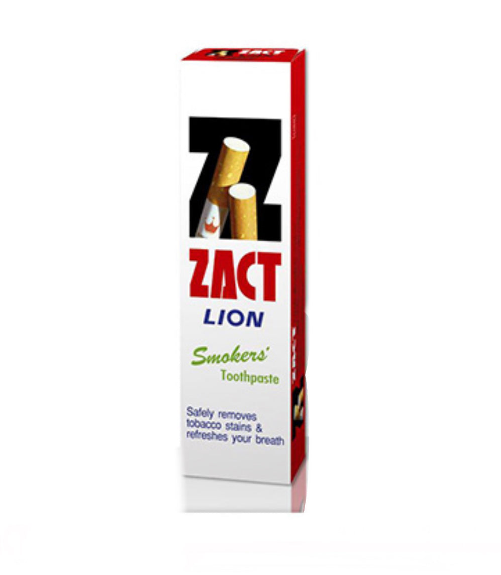 ZACT Lion toothpaste for smokers Helps reduce the accumulation of various stains. that occur on the tooth surface Makes teeth white, clean, bright It is also gentle on tooth enamel, reduces bad breath, cigarette smell, and fresh breath. Deeply cleans the mouth, prevents tooth decay, and gives white teeth.